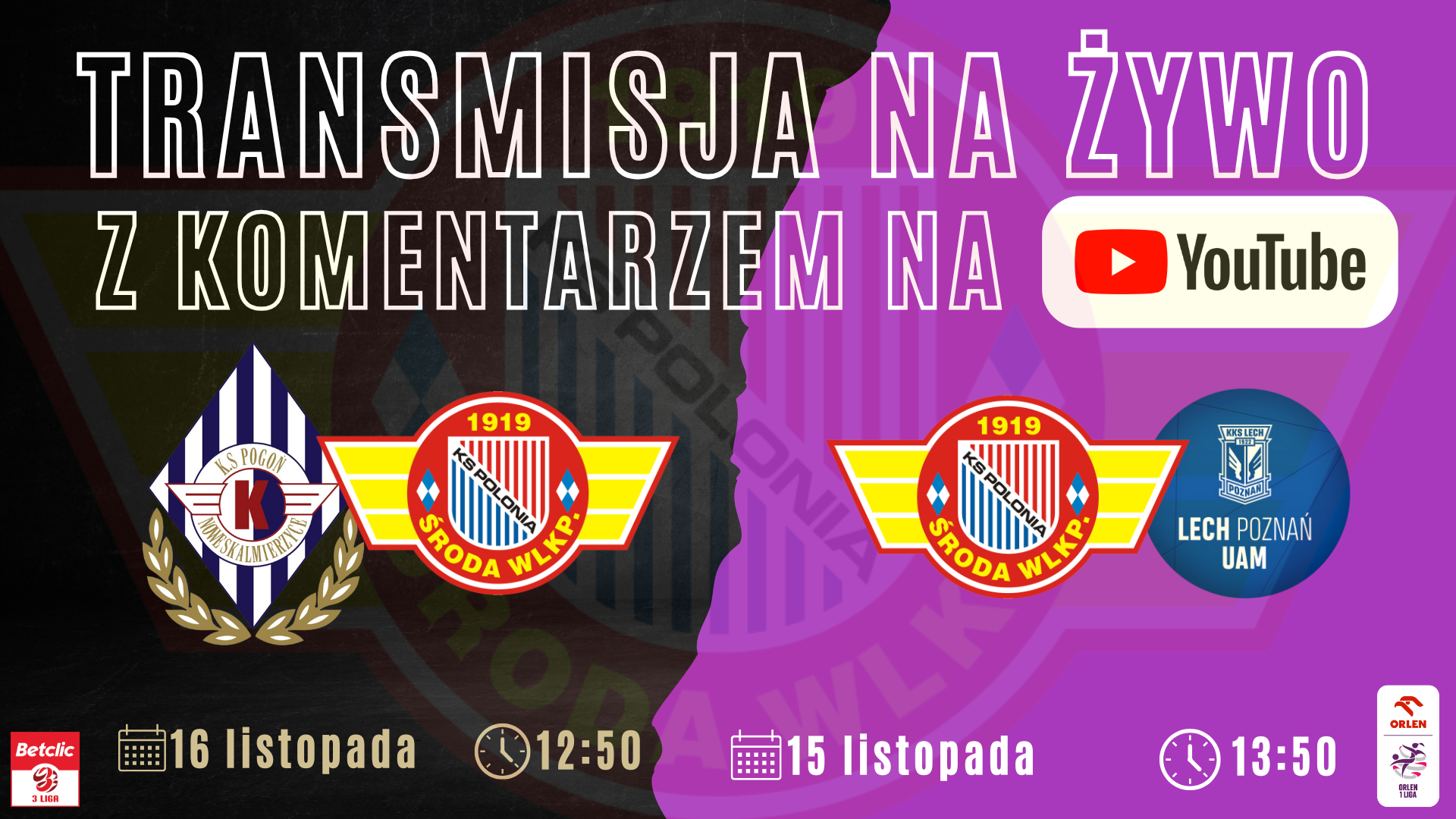 Zapraszamy Was na weekendowe spotkania zespołów Polonii Środa które pokarzemy na antenie PoloniaTV. Wszystkie mecze oczywiście z komentarzem.